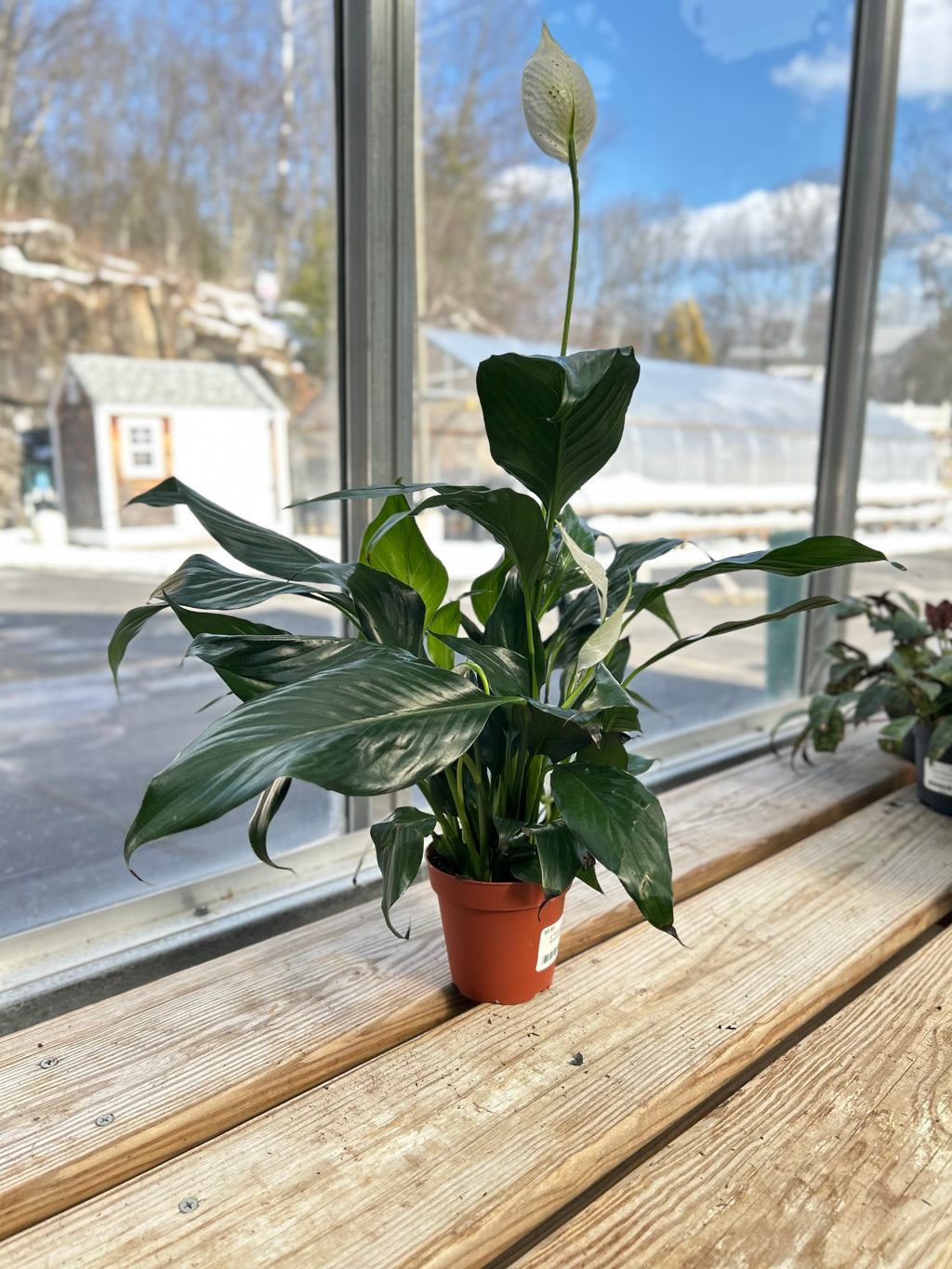A popular choice for home and office with its dark green foliage and white "flowers". It has excellent air purifying abilities